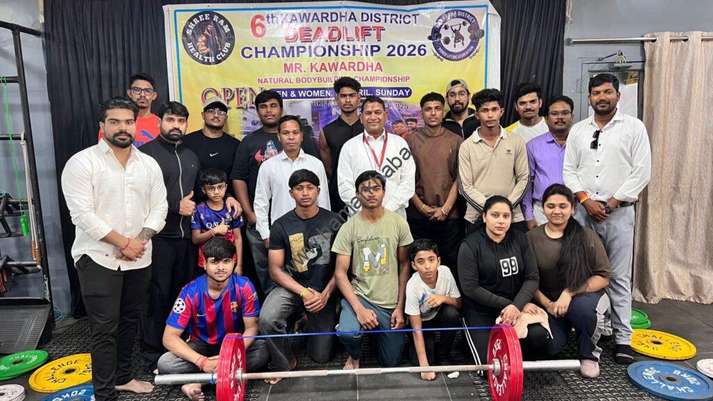 कवर्धा। शहर के श्री राम हेल्थ क्लब जिम में 12 अप्रैल 2026 को 6वीं जिला डेडलिफ्ट एवं “मिस्टर कवर्धा” नेचुरल बॉडीबिल्डिंग प्रतियोगिता का सफल आयोजन किया गया। इस प्रतियोगिता में कवर्धा क्षेत्र के लगभग 30 खिलाड़ियों ने उत्साहपूर्वक भाग लिया। आयोजन महिला और पुरुष दोनों वर्गों में किया गया, जिसे कवर्धा पावरलिफ्टिंग एसोसिएशन और श्री राम हेल्थ क्लब जिम के संयुक्त तत्वावधान में संपन्न कराया गया।